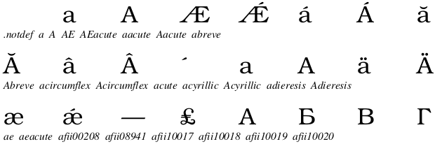 verifică (folosind /CharStrings, known, ifelse şi forall) faptul că 33 dintre cele 35 de fonturi Type 1 de bază conţin aceleaşi 1004 nume de caracter.